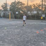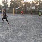 【陸上選手:あざみ野第一小;子供8】                                         ウォークドリルからブラジル体操をしました。少しずつ覚えて動きもできるようになってきています。後半はマーカーを使って弾みながら反発の感覚も意識しました。