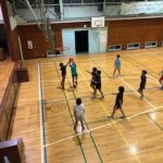 【陸上:あざみ野第一小;子供34】 久しぶりの体育館。雨が降ったので、グランドも柔らかです。それに運動会もちかいののでグランドがガタガタになってしまうと大変です。ゴムを使って「幅跳び、幅跳び」をしました。始めてやる子も多かったのでビックリしました。
