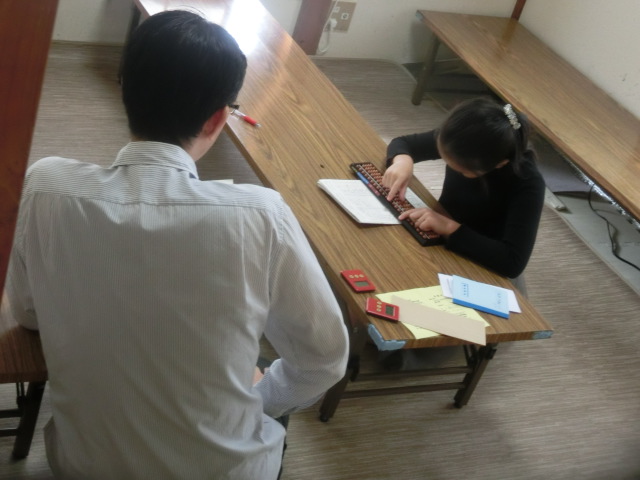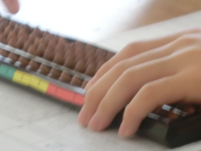 【そろばん:事務所;子供2】 今日は近隣の小学校の運動会が行われたため、出席者はわずかでした。マンツーマン指導を行いました。。