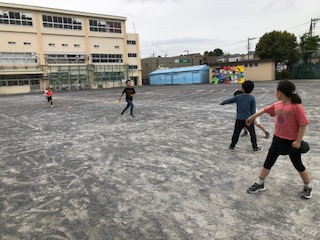 【陸上:山内小;子供16】 インフルエンザの学級閉鎖が多いらしく土曜日のイベントも中止に。グランドも体育館も普通の時間にできるように。部活を引退した先輩が遊びに来てくれました。子供達は嬉しいそうに走ってました