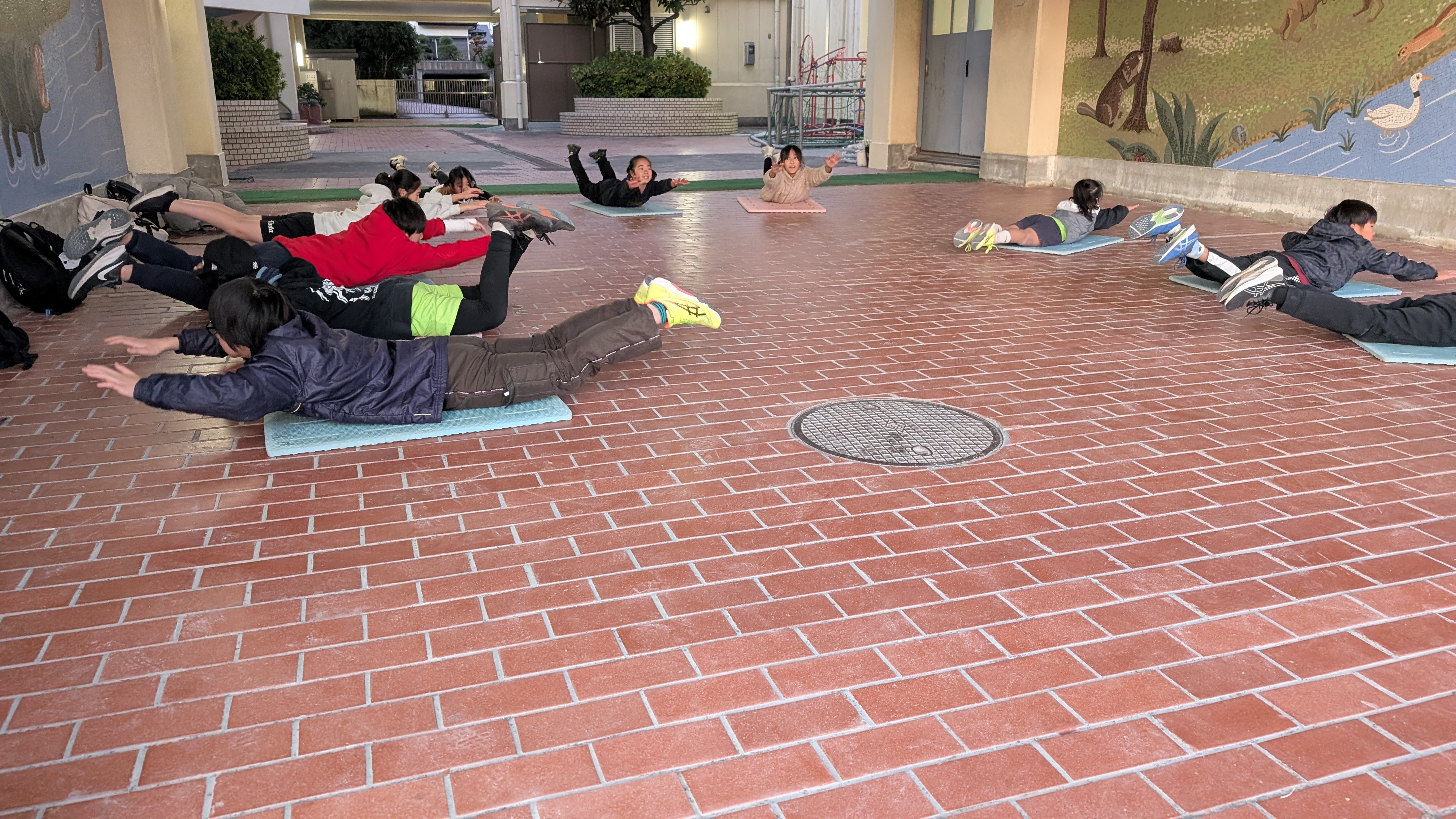 【陸上選手:あざみ野第一小;子供12】 マットで刺激を入れてウォークドリル、ブラジル体操を行ないました。小学校が違うお子さんもいますが、少しずつ慣れてきて仲良くなってきています。50mリターンズも粘っていました。