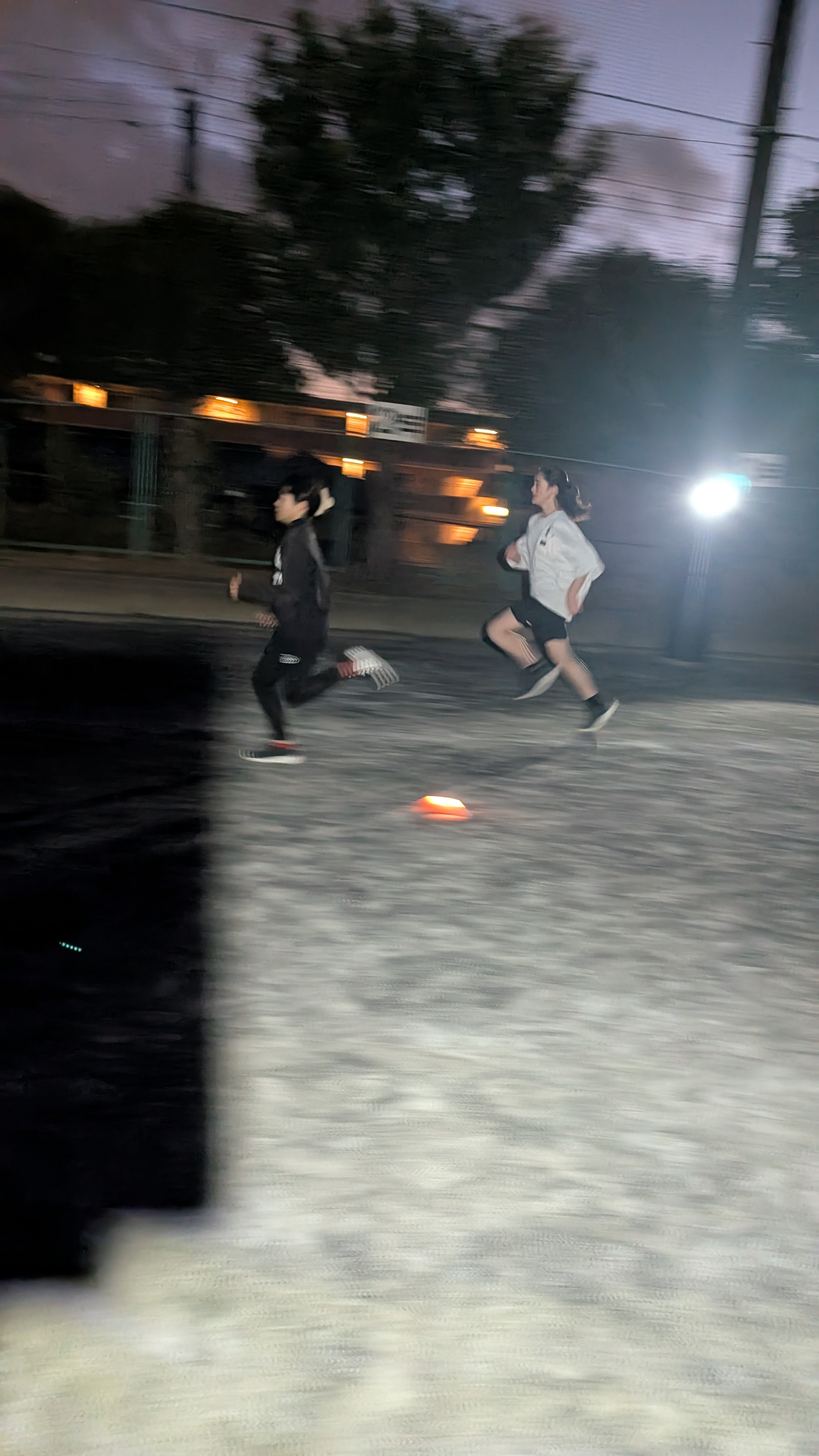 【陸上:山内小;子供16】 段々と日が暮れるのが早くなりました。リレーの時、バトンもみえなくて・電気を使わないと大変。今年は今日で終わり。来年また会う迄、運動はしていてください。