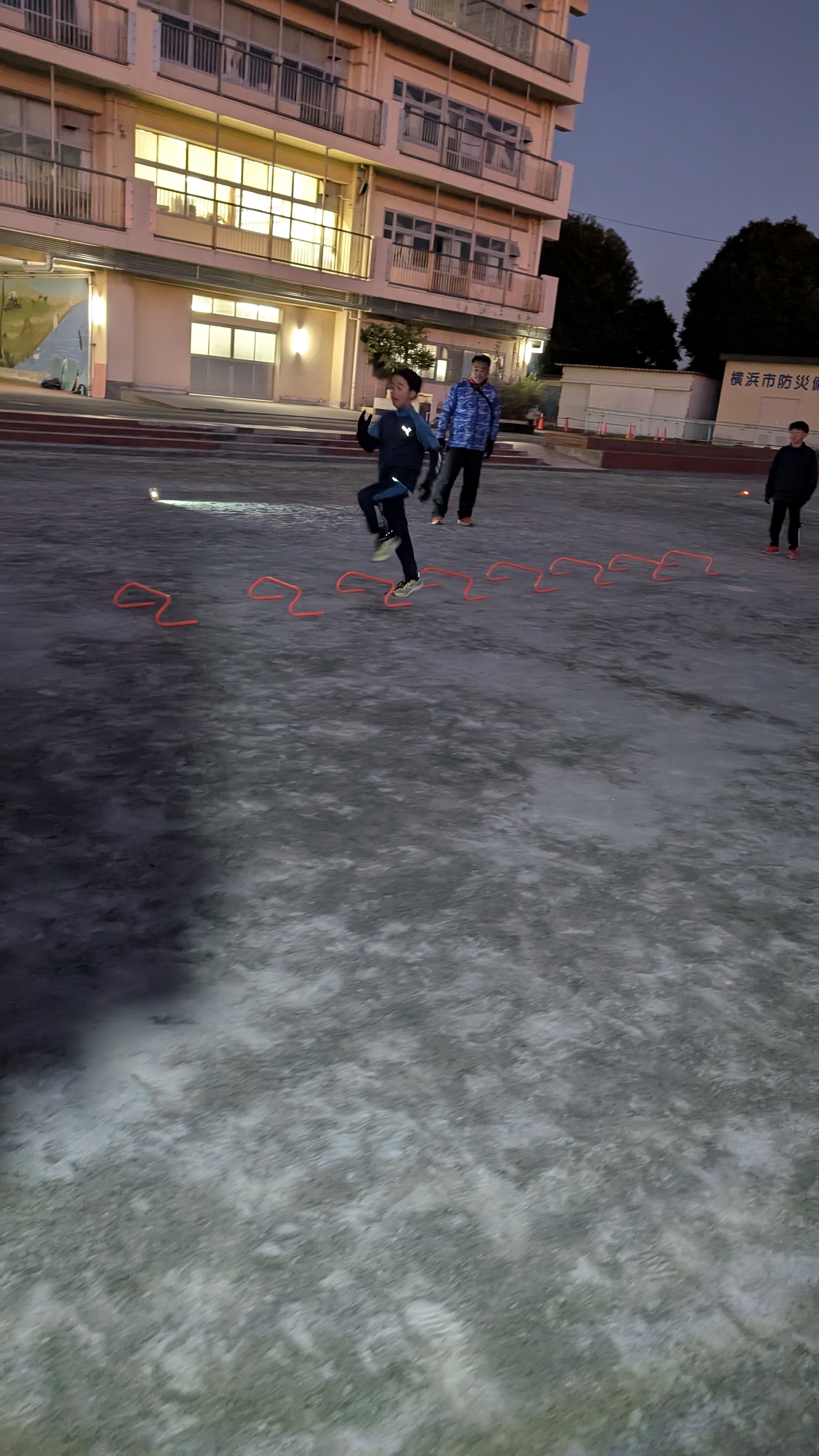 【陸上選手:あざみ野第一小;子供12】 年明け初めての教室でしたが、子どもたちはよく体が動いていました。新しいシューズでわくわくしながら練習している子もいました。