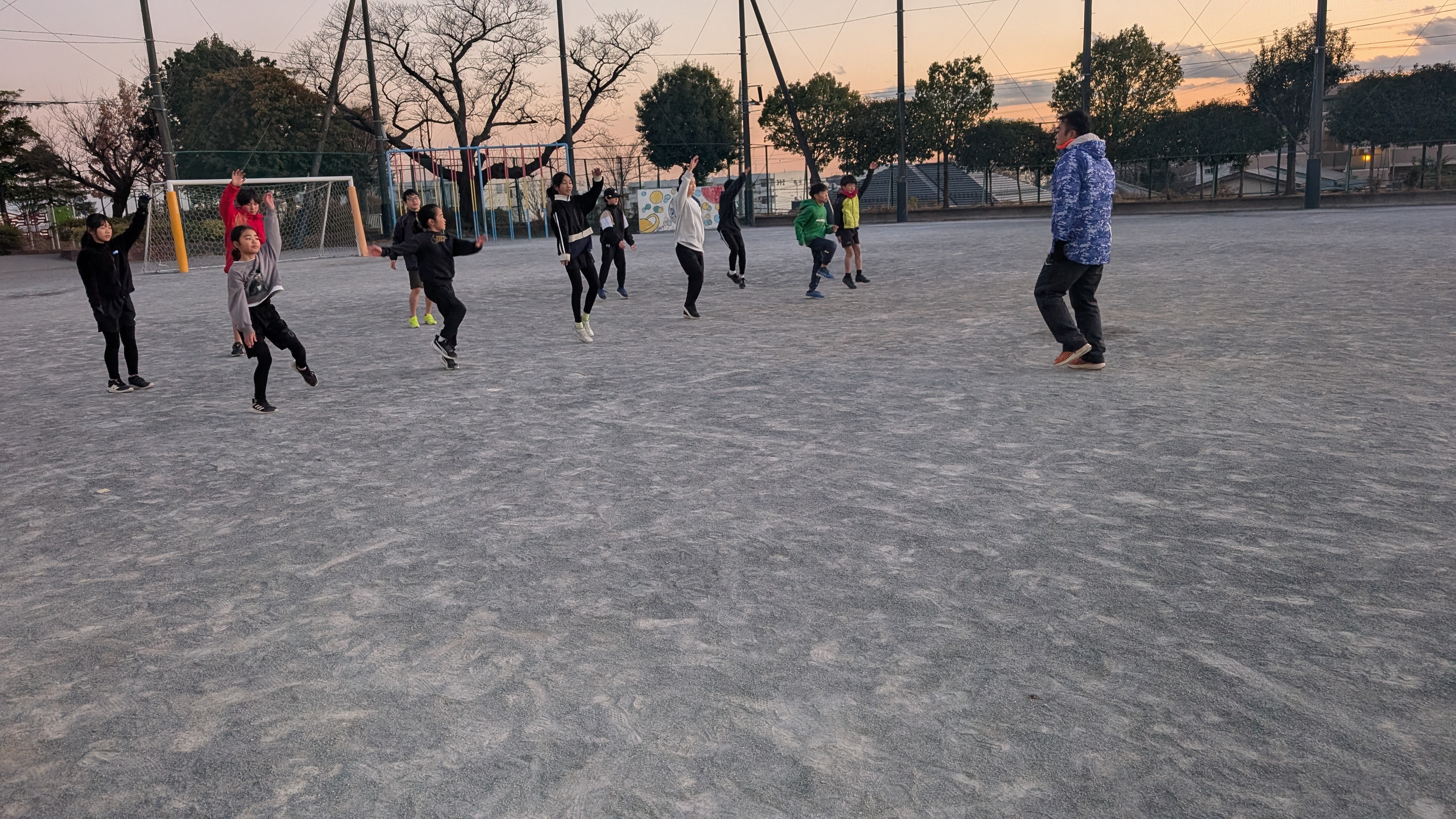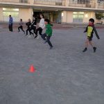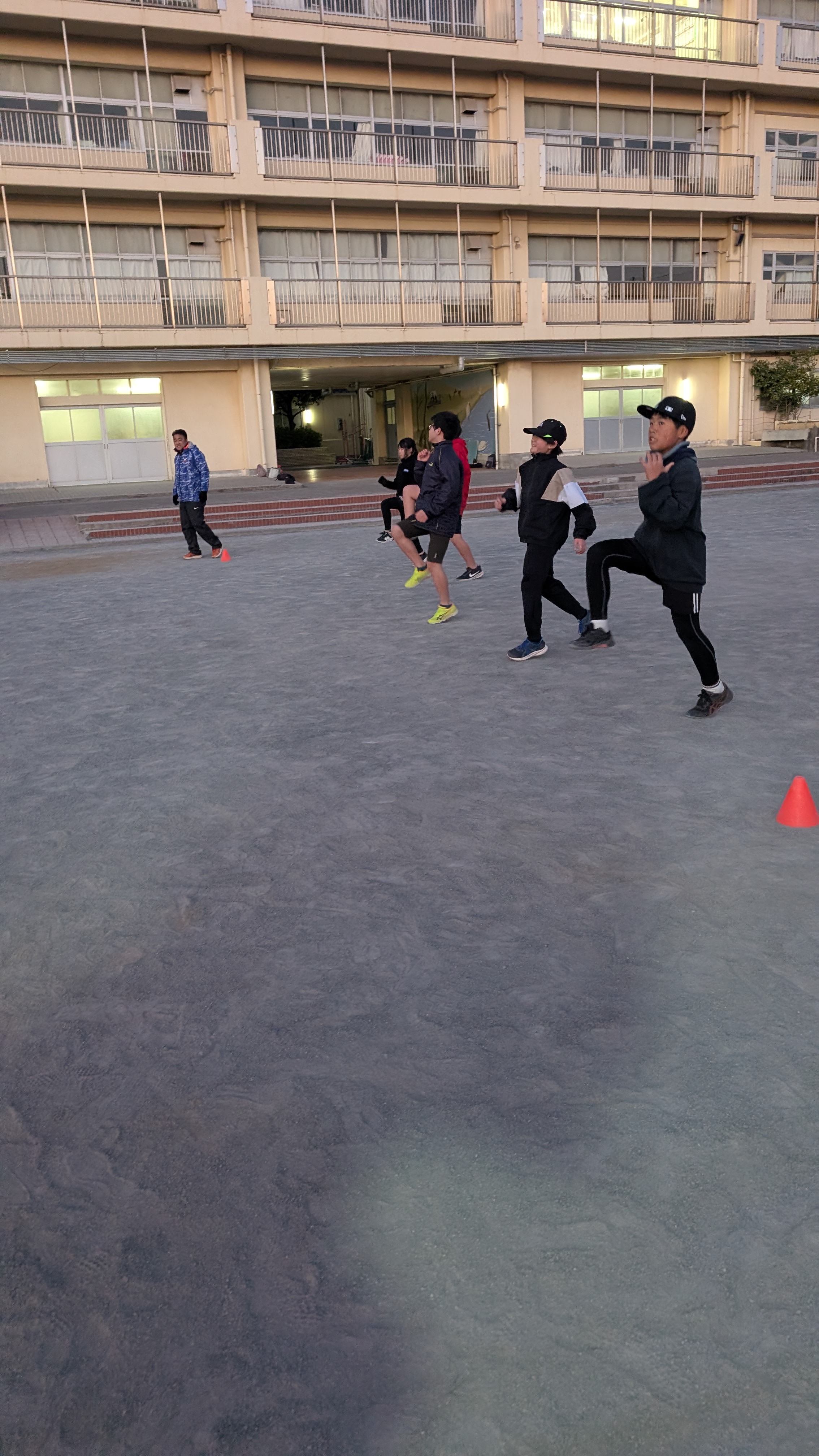 小学校もバラバラですが少しずつ仲良くなってきて和気あいあいとしています。基本的な体操のあと、70mを色んな動きに合わせて走りました。