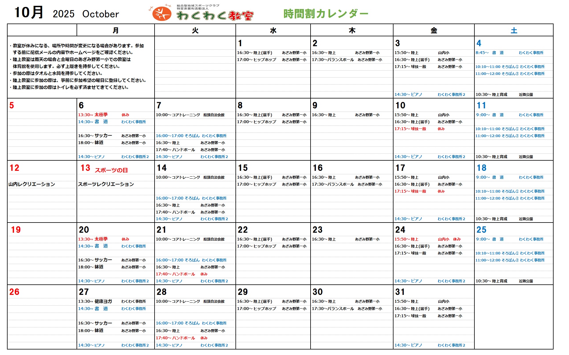 10月時間割