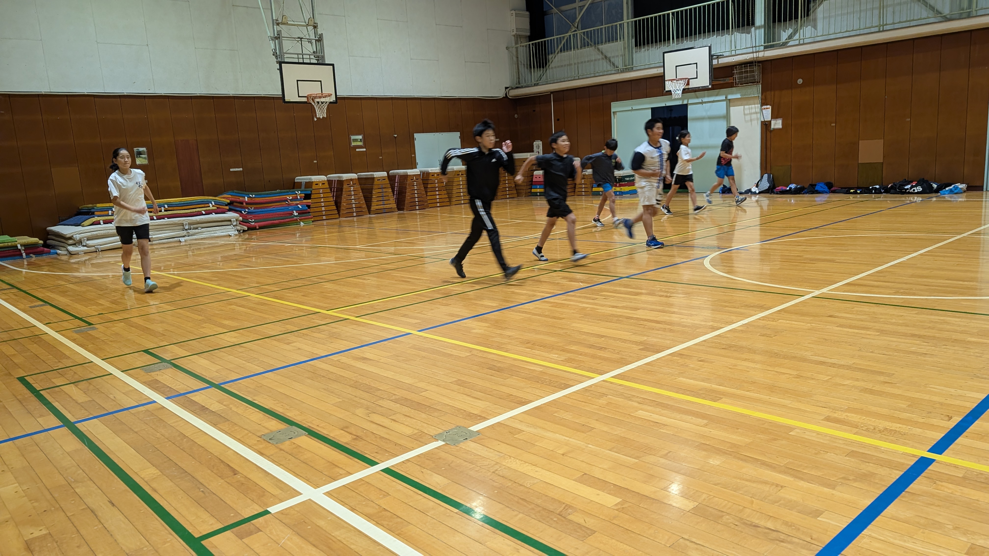 【陸上:山内小;子供13】 久しぶりの雨で体育館を使用。中での運動は練習も制限されて注意もしないといけないので大変。来週は晴れますように。