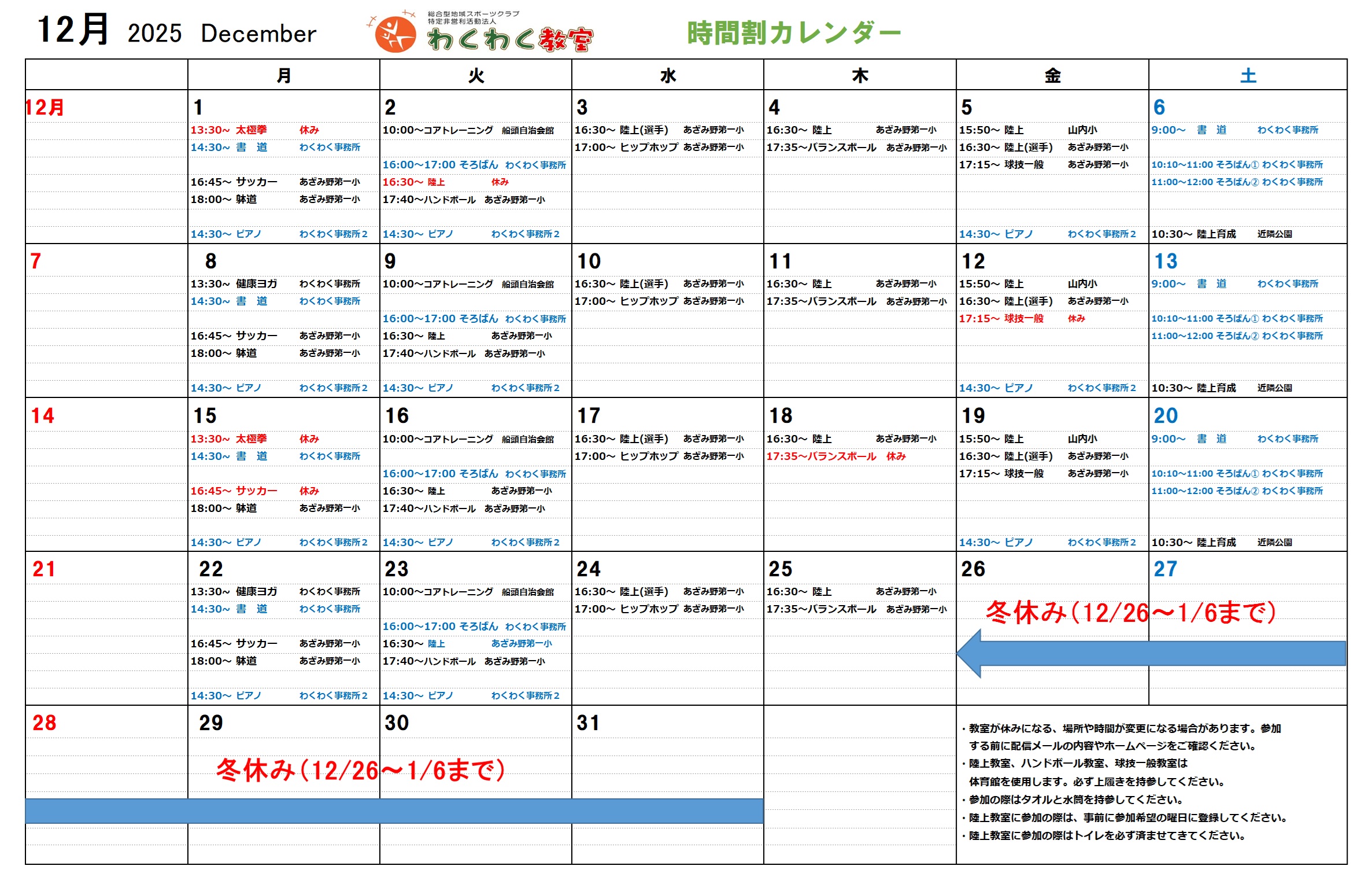 12月時間割
