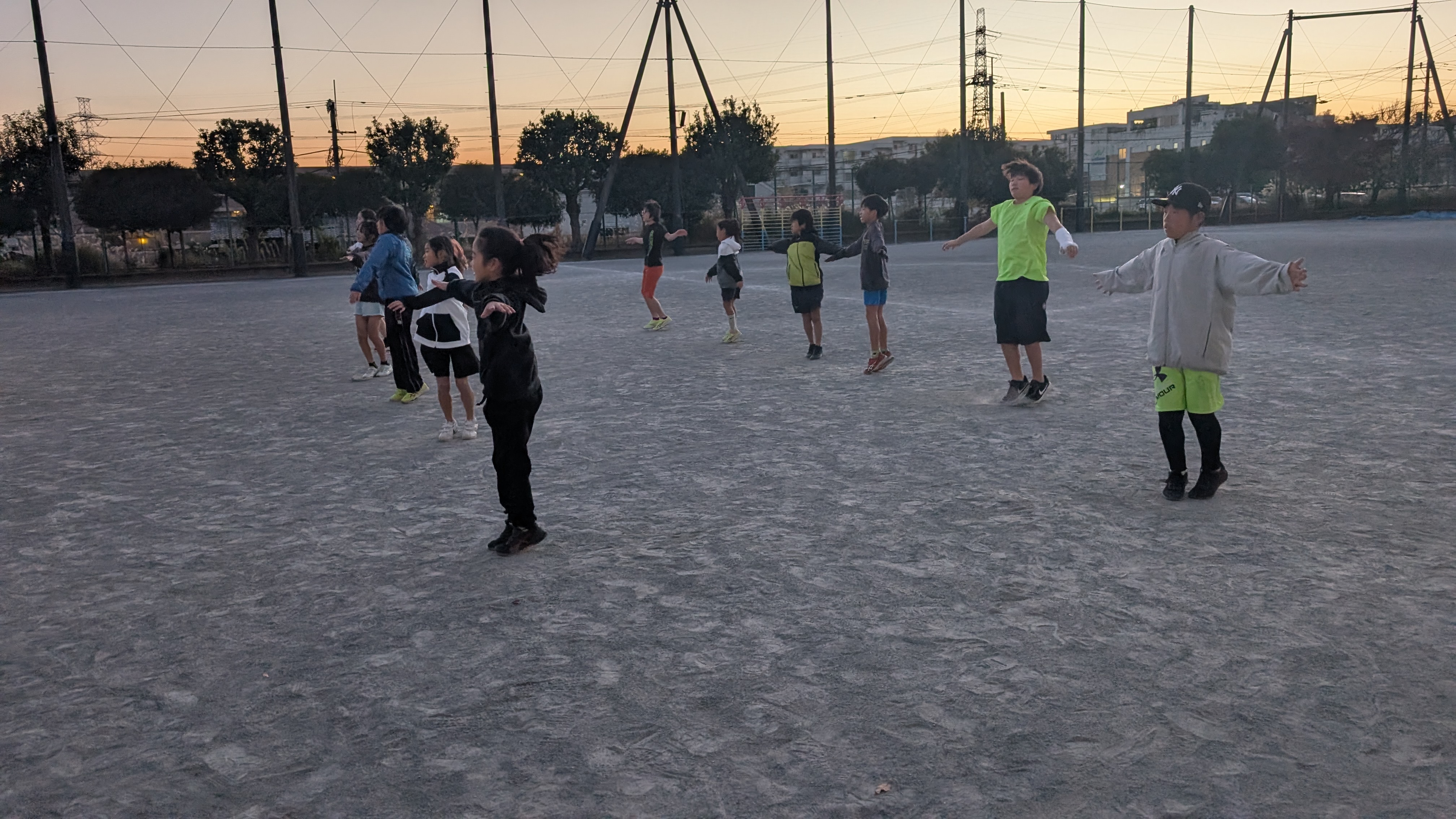 【陸上選手:あざみ野第一小;子供11】 新しい動きも取り入れながら普段の動きも確認しつつ進めています。暗くなるのが早くなってきているので先に動きや走りの練習をし、最後に明るいところで補強を行っています。