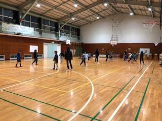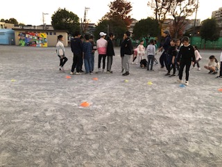 【球技一般:あざみ野第一小;子供17】 寒いし、暗くなるのが早いのか参加者が少なかったです。楽しくプチ試合をしました。低学年はまだまだラグビーみたいです。