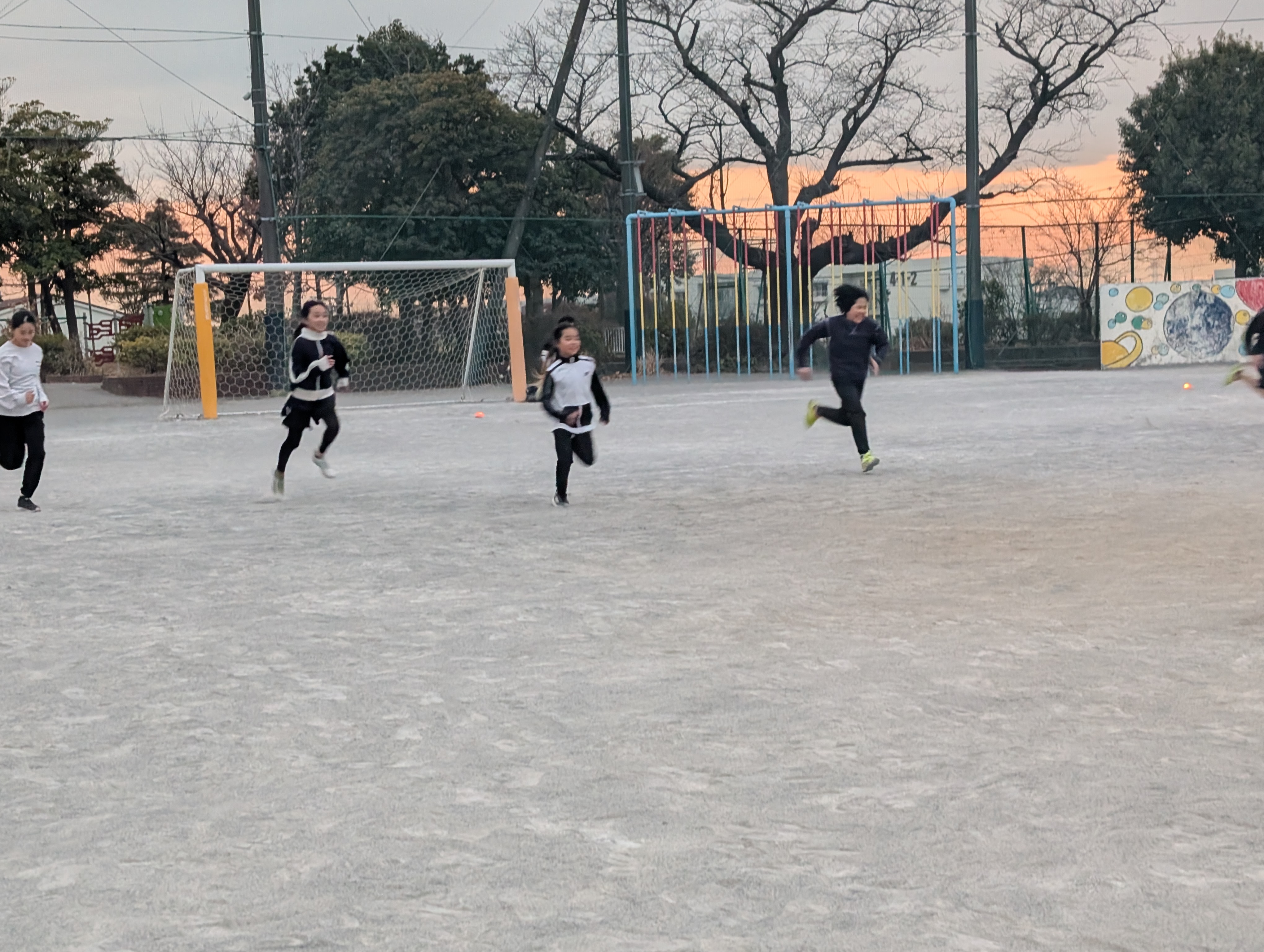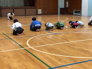 休みが増えました。裸足で技をしますが寒そうです。可愛い声で「えい」と技披露。子供は風の子元気な子。早く春よ来い。