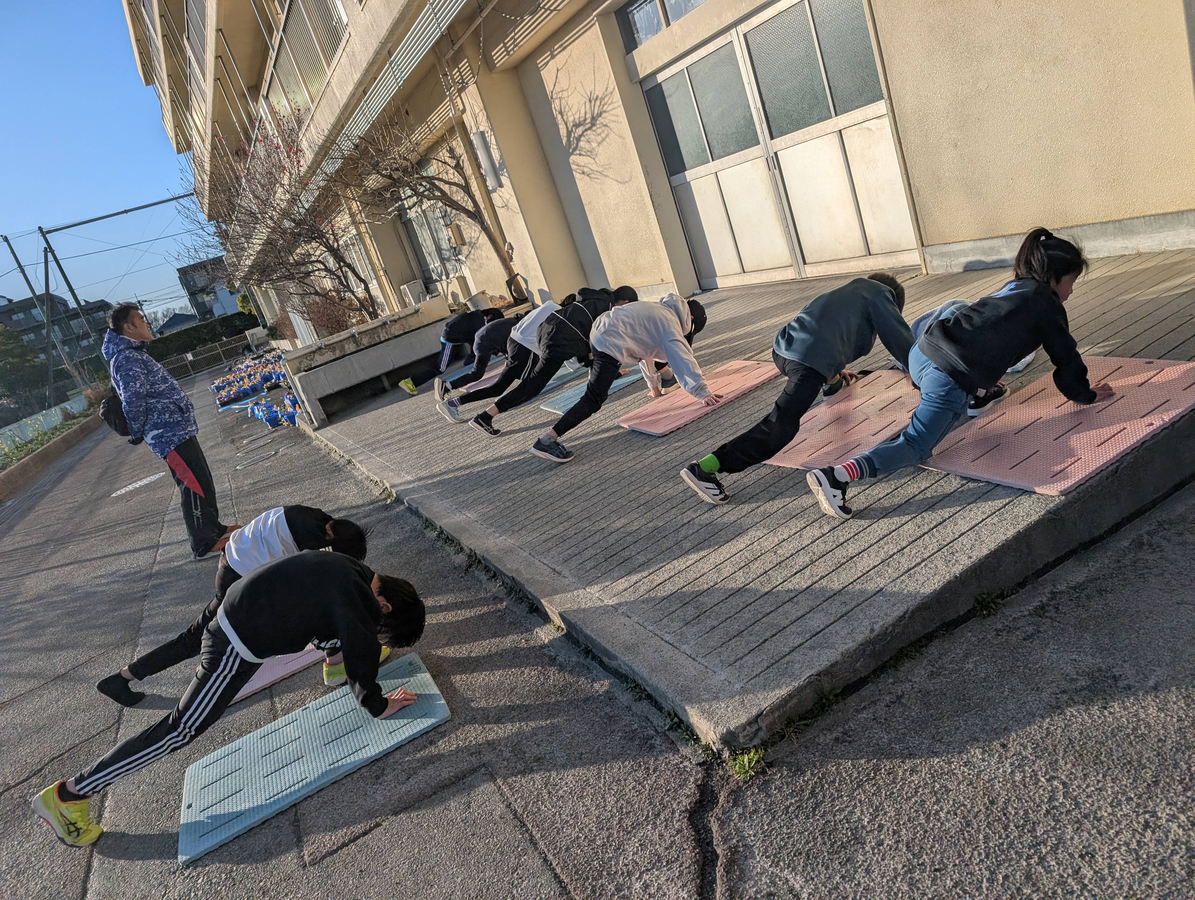 腰の低い姿勢からのスタート練習を丁寧に行いました。その動きをふまえて、150mを3本。みんなのびのびと走れていました。