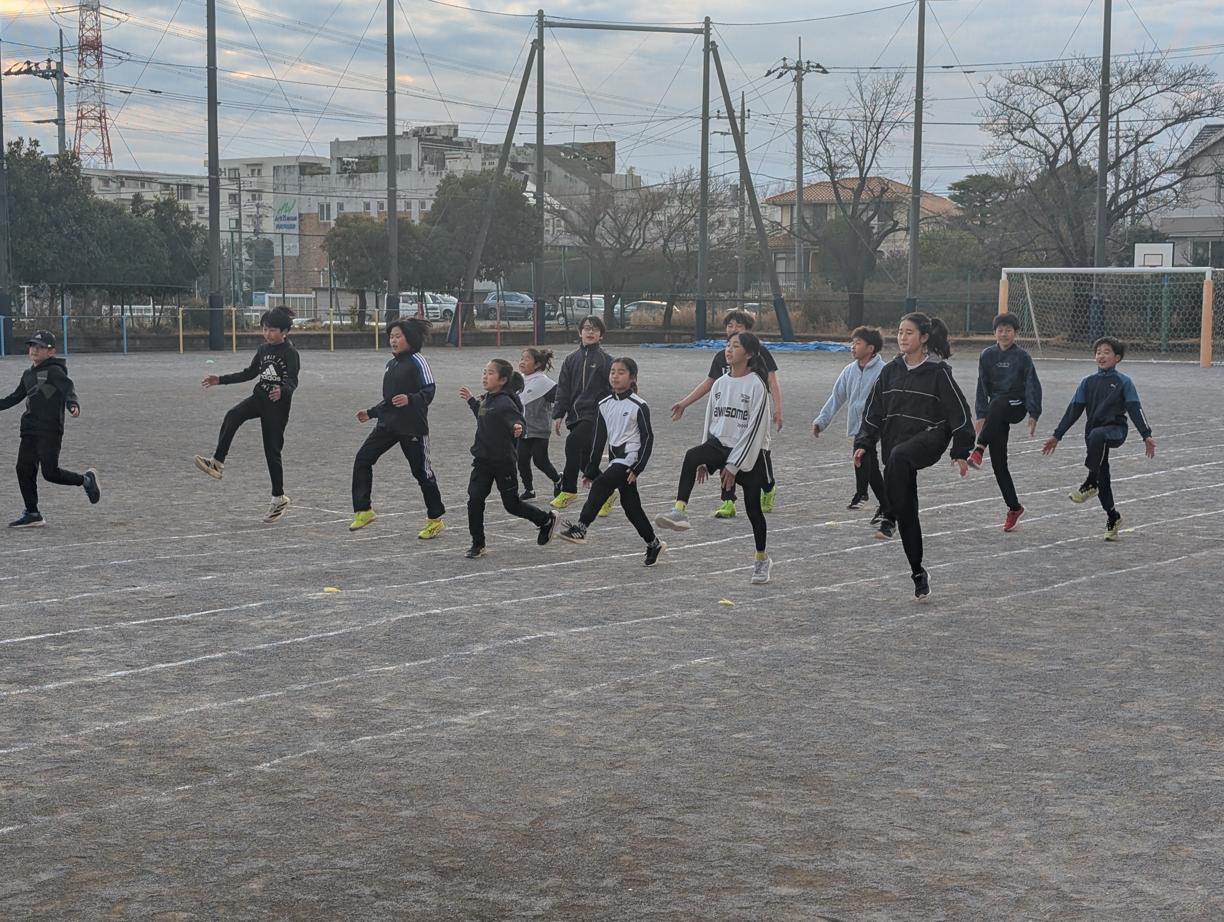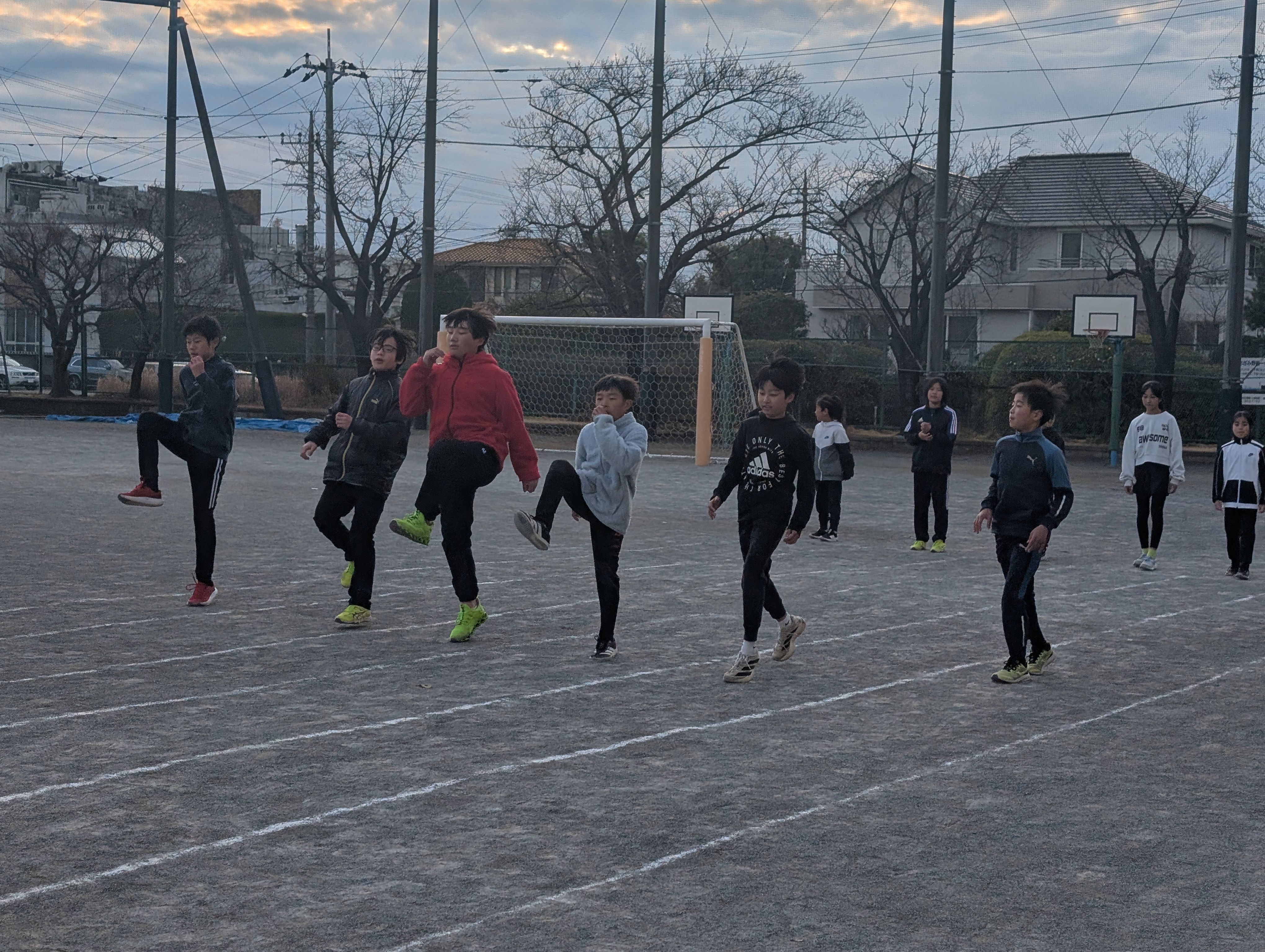 【陸上選手:あざみ野第一小;子供13】                                                     ベースポジションの確認や色々なスキップを丁寧に行いました。少しずつ上達している子もいて、積み重ねの大切さをつくづく感じます。最後は150mを2本走りました。